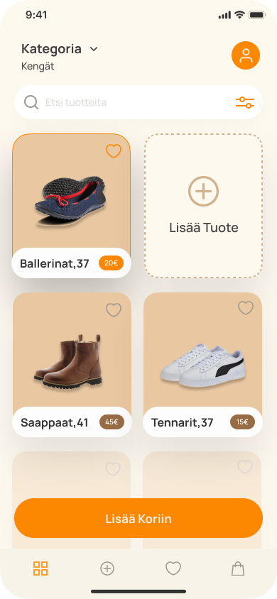Suunnitellessa mobiilisovellusta SELL NOW -brändille panostin houkuttelevaan etusivuun. Haluan, että käyttäjä tutkii sovellusta heti, perehtyy siihen ja alkaa käyttää sitä sen elävän valokuvauksen ja helppokäyttöisyyden vuoksi.